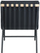 Keep it casual with this Burke accent chair. This eye-grabbing chair has an uber laid-back vibe with its armless design and slightly reclined back. Soft black vegan leather feels great against the skin and provides the look without the expense. An overstuffed, channel-tufted seat and back cushion make it super comfy and ready for evenings spent relaxing and taking it easy. An all-metal frame provides support for durable use, and an oak veneer metal dowel provides interesting contrast to draw the eye instantly from all angles.