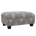 - The Carter ottoman adds patterned interest and extra comfort to your seating area, featuring a speckled dark gray base woven with a cream geometric diamond and stripe design. The textured fabric complements other seating in the collection, offering an easy accent for transitional or modern living rooms. A generously cushioned top functions as a footrest or casual extra seat, while the compact shape makes this upholstered ottoman a flexible addition to any living room layout..