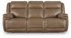 Looking for modern comfort that makes a subtle statement? With striking design details and expertly matched leather and faux leather upholstery, this sleek power reclining sofa delivers luxury without the fuss. The Zero³ reclining requires minimal space between wall and chair back while delivering fully supported, fully reclined comfort at the touch of a button. Its generous padding feels as good as it looks, and the adjustable headrests and USB charging are pure indulgence. It's the perfect blend of sophisticated style and innovative comfort.