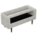 The Isla Storage ottoman blends style with functionality to bring a fresh breeze to your home. With its low back and solid wood legs, this ottoman offers both comfort and durability. The soft chenille fabric, in a light cream color with flecks of gray, creates a serene and inviting look. Hidden bench storage provides a perfect place for blankets, books, or other essentials to keep your space organized and clutter-free. Equally suited to placing at the end of a bed as by an entryway, the Isla storage ottoman combines timeless design with everyday elegance.