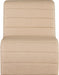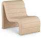 Count on this Ivy tan vegan leather accent chair quickly becoming the most coveted seat in the house. Wrapped in soft vegan leather and adorned with a channel tufted design, its curved shape offers unparalleled comfort and support. Designed for the modern home, it effortlessly blends contemporary aesthetics with luxurious materials. Whether placed in a cozy corner or as a standout piece in your living room, this chair invites you to unwind in unparalleled elegance and enjoy a moment of tranquil indulgence.