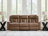 Classic, versatile and comfortable in every sense. This reclining sofa is designed for everyday relaxation. Sleek faux leather offers a soft, supple feel that’s easy to maintain, while one-pull reclining makes unwinding effortless. Complete with a goes-with-anything caramel hue, it’s a beautiful blend of style and practicality.
