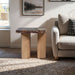 A bold fusion of rich materials, the Ravenna burgundy genuine marble top and natural oak wood base end table showcases burgundy red cherry-colored marble with striking veining. Its handcrafted marble surface is beautifully balanced by a natural oak wood base, blending warmth with architectural form. Rooted in Art Deco influence, this statement piece is designed to elevate any space with sculptural elegance.
