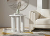 The Romaine End Table is a stunning piece that will elevate the style of any living space. Its modern, sleek matte finish gives it a sophisticated look, while its sturdy iron metal construction ensures durability. The pedestal bases provide excellent support and stability, and the wavy top adds a unique design element. It's a great way to add a distinctive touch to any space.