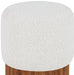 Indulge in the luxurious texture of the Veranda Boucle Fabric Ottoman/Stool. It boasts a rich boucle fabric that is paired with an elegant and sturdy solid wood base, featuring a walnut finish that highlights the beautiful wood grain patterns. This unique combination of materials creates a perfect blend of style and durability, making it an ideal addition to any modern or traditional interior design.