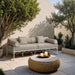 Bold art deco lines and plush water-repellent fabric define the Portofino patio sofa. Wrapped in a cream off white aluminum frame, it balances striking design with outdoor durability. Perfect for lounging under the sun or stargazing in style, this chair turns any outdoor space into a chic retreat.