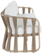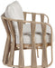 Woven polypropylene rope and resilient waterproof fabric give the San Pietro outdoor patio sofa a striking, art deco-inspired look. Wrapped in a natural aluminum teak frame, it's built to withstand the elements while maintaining its elegant appeal. Perfect for lounging outdoors, this piece blends sophisticated style with ultimate comfort.