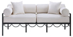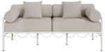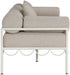 Bold art deco lines and plush water-repellent fabric define the Portofino patio loveseat. Wrapped in a cream off white aluminum frame, it balances striking design with outdoor durability. Perfect for lounging under the sun or stargazing in style, this chair turns any outdoor space into a chic retreat.