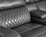 City sleek living. This sectional is loaded with luxury. An ultra-stylish diamond stitch design pumps up the piece with eye-catching drama. And talk about style with purpose. This sectional supports you with a high back and faux leather upholstery in gorgeous gray. Its USB charging station powers up your tech life as you recline in comfort.