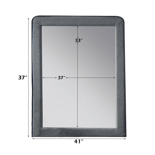 ACMEValda - Mirror - Light Gray FabricProduct Features Mirror NOT Beveled Padded: Light Gray Fabric & Black Welt Trim ASTM F2057 - 17 + ASTM F3096 ...