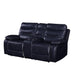 Aashi - Motion Loveseat With Console - Navy Leather-Gel Match