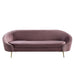 The Abey living room collection is not only visually striking, but it also offers plenty of comfort. The curved silhouette creates a glam appearance. Upholstered in a luxurious pink velvet fabric to add dimension to the pieces. The gold metal tapered legs add another pop color and emphasize the glamorous design. This set provides enough seating for all your guests.