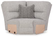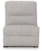 | Details | Includes 7 modular pieces: left-arm facing power recliner, power armless recliner, console with storage, wedge, right-arm facing power recliner and 2 armless chairs, "Left-arm" and "right-arm" describe the position of the arm when you face the piece, Versatile modular pieces fit together in a variety of configurations, One-touch power control with adjustable positions, Easy View™ adjustable headrest and zero-draw USB port, Zero-draw technology only consumes power when the USB receptacle is in use, Zero-gravity mechanism allows optimum reclining comfort with infinite reclining positions at the touch of a button, Reinforced frame and metal seat box provide added stability, Attached cushions; high-quality foam cushions wrapped in poly fiber, Accent pillows included; pillows with soft polyfill, Polyester upholstery, Next-Gen Nuvella™ is a performance fabric that is soft, easy to clean, stain-resistant and durable, Clean fabric with mild soap and water, let air dry; for stubborn stains, use a solution of 4 oz. bleach to 28 oz. water, Console with 2 cup holders and hidden storage; power cord included; UL Listed | |