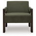Get your modern sophistication on with this chic accent chair. Its rich olive green velvet upholstery is both luxurious and inviting, while an espresso-finished wood frame provides a warm, grounding element. The chair's clean lines and minimalist design make it a versatile piece that complements a variety of decor styles.