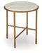 This end table is the essence of sleek and chic. An on-trend metal frame in an antiqued goldtone is expertly paired with a showstopping natural marble top for a truly transitional contemporary vibe. Blending perfectly with today's interiors, this table is ideal for displaying treasures or holding drinks when guests arrive.