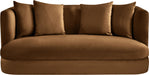 The Alder saddle velvet upholstered loveseat is an invitation to relax. Its rounded silhouette and soft velvet upholstery create a cozy and inviting space, perfect for relaxing with someone special. Whether you're hosting guests or enjoying a quiet evening, this loveseat brings warmth and style to any room.