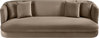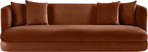 The Alder velvet upholstered sofa is an invitation to relax. Its rounded silhouette and soft velvet upholstery create a cozy and inviting space, perfect for stretching out and relaxing. Whether you're enjoying a quiet moment or hosting guests, this sofa is the perfect centerpiece for any living space.
