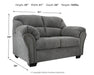 Why sacrifice comfort for style (or style for comfort) when you can have the best of both in this loveseat in pewter gray. Elements include a chic divided-back design and pillow top wrapped armrests that make nodding off all too easy. Calling attention to the elegantly flared armrests—black nickel-tone nailhead trim for a punch of cool character.