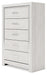 | Details | Made of engineered wood (MDF/particleboard) and decorative laminate, Light finish with subtle pearl effect over replicated cedar grain with authentic touch, Large scale chrome-tone handles with mosaic details, Faceted chrome-tone accents, Five smooth-gliding drawers with faux linen lining, Safety is a top priority, clothing storage units are designed to meet the most current standard for stability, ASTM F 2057 (ASTM International), Drawers extend out to accommodate maximum access to drawer interior while maintaining safety | |
