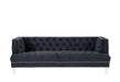 Sophistication meets modern with the Ansario living room collection. The rich blue velvet adds character to any room. Showcasing a square back, high arms, and nail-head trim, feature button tufted accents. The acrylic legs give off a modern vibe to the pieces. The full foam seats ensure that your next TV binge will be done in complete comfort.