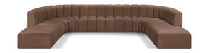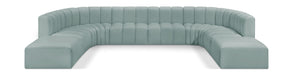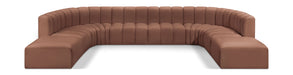 Unleash modern opulence with the Arc Vegan Leather Modular Sofa. Crafted for the modern connoisseur, this sofa injects an air of refined luxury into any space. Its sleek silhouette, upholstered in supple vegan leather, exudes timeless sophistication while the deep channel tufting adds textural intrigue, further elevating the chair's visual appeal. The modular design makes it a versatile chameleon, effortlessly adapting to your evolving needs and preferences. Whether you envision it gracing a chic living room corner, basking in the glow of a bedroom window, or adding a touch of drama to a home office, the Arc seamlessly complements your unique interior aesthetic.