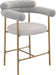 Chic is the word of the day when you give your kitchen counter or home bar a new look with this Blake boucle fabric and vegan leather counter stool. A curved back ensures body-hugging comfort while sipping mimosas or chowing down on breakfast fare. The brushed brass iron metal frame provides reliable support for this counter height stool while the rich boucle fabric upholstery and soft vegan leather padding ensure comfort for all who decide to take a meal (or have a snack) with you.