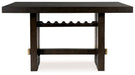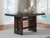Dressed to thrill, this counter height dining table offers a high-design look at a down-to-earth price. Ultra-sleek lines are accentuated with a dark waxy brown oak-tone finish that’s so easy on the eyes. A thick tabletop and a pedestal base with integrated wine rack showcase quality craftsmanship and attention to detail. Clean-lined and modern, this timeless table has a look that’s made to last.