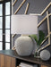 | Details | Made of polyresin with drum hardback fabric shade, Warm gray and white antiqued finish, 3-way switch, 1 E26 socket, type A bulb recommended (not included); 150 watts max or LED equivalent; UL Listed, Assembly required | |