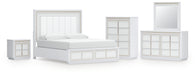 Chalanna California King Upholstered Storage Bed, Dresser, Mirror, Chest and Nightstand
