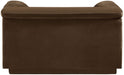 Add instant modern pizzazz to your living room or den with this Cascade velvet fabric chair. Upholstered from top to bottom in soft velvet upholstery, this chic chair adds contemporary flair to any space you choose to use it in. Curved arms and a sleek profile make this chair beautiful to behold while deep channel tufting adds to its long-term durability and adds a textural feel. Thickly padded arms, back and seat make this chair perfect for curling up in while watching TV or reading the latest bestseller.