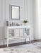 Embracing modern glamour, this server is a sparkling addition to your dining area. The bright white lacquer finish, shimmering rhinestone accents and glass panel doors give this piece plenty of polish. Discreetly placed along the upper valance, white LED lighting adds the perfect finishing touch.