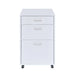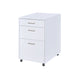 Keep your personal files safe and mobile with this Coleen file cabinet. The perfect size for personal use, including casters make this cabinet easy to move. The bottom larger drawer is the right size for file folders, middle box drawer is perfect for supplies and the top drawer is great for office supplies or other small accessories. The high gloss finish looks good in any environment and is easy to clean.