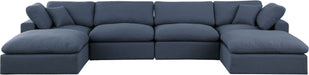 Comfy - 6 Piece Linen Modular Double Chaise Sectional - Blue