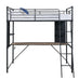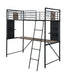 This Cordelia loft bed with a built-in desk is the perfect solution for those that are low in space. Suited for any growing child’s bedroom. Below the bed, there is a long multi-use desk for homework, crafts, school projects, and computer time. Let their imaginations run wild with this one. This bed strikes a clean-lined silhouette with its simple design and antique oak wooden accents. The frame is constructed with heavy-duty metal tubes that keep it sturdy and durable for years of enjoyment.