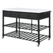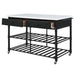 Give off a light and airy feel to a compact cooking space. The Emery Kitchen Island features a artificial stone top paired with two metal slatted shelves, creating a sleek, timeless silhouette that bring your kitchen an open feel. Two storage drawers and hanging rods help you organize a variety of tools in your kitchen. Four caster wheels roll easily, providing excellent mobility to this piece. Use this stylish yet functional addition to complete your kitchen decor.