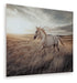 This wall art brings serene beauty to your home. This captivating print on glass captures the grace and majesty of a wild horse galloping through a golden field. The warm, earthy tones and dynamic composition create a sense of freedom and movement. It's a perfect choice to enhance your wall decor with nature-inspired artistry.