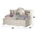 This classic Estrella daybed will be a wonderful addition to the youth bedroom in your home. This piece has great style and function, with crown craving bed and case good, this piece can provide a comfortable place to lounge during the day, and cozy spot to sleep at night. The convenient storage drawers below allow you to easily store stuff. Matching bench, nightstand, dresser, chest and desk offer a lot of other functions and spaces as your reference.