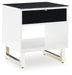 | Details | Made with MDF substrates, High-gloss white finish, Black glass tabletop; black acrylic laminate drawer front, Smooth-gliding storage drawer, Open display shelf, Legs with chrome-tone finish Made with MDF substrates, High-gloss white finish, Black glass tabletop; black acrylic laminate drawer front, Smooth-gliding storage drawer, Open display shelf, Legs with chrome-tone finish, Assembly required | |