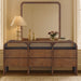 Arched edges, bold geometry, and rich burl wood grain give the Giada mirror its art deco edge. Layers of oak and ash veneer create a striking visual texture that is a statement. Built from a mix of solid wood and MDF, it delivers durability wrapped in undeniable style.