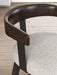Details Made with solid wood frame, Dry, smoky dark brown oak finish, Polyester upholstery, Foam cushioned seat, 360-degree swivel, Assembly required