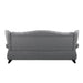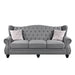 The timeless silhouette of the Hannes sofa collection makes it a great choice for your living area! With classy winged backs accented by buttonless tufting, nailhead trim on the rolled armrests, and wood bun-turned front legs, Hannes combines the best of traditional design without sacrificing comfort. Also included are accent pillows with removable colors in a floral pattern for a splash of color against the demure gray upholstery. This beautiful sofa set is sure to impress!