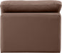 Experience ultimate comfort and style with our vegan leather Indulge Armless Chair. The luxurious vegan leather will elevate the aesthetic of any room. This chair provides ample space for you to relax while its modular build offers the option of unlimited configurations. Whether you're looking to add a stylish element to your living room or a comfortable seating option to your bedroom, this chair is the perfect choice.