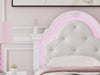 Fit for a princess. This twin upholstered panel bed’s crisp matte white finish pairs with charming ornate beading and sumptuous button-tufted upholstery—perfect for your girly girl. Decorative ball tops and multicolored LED lighting in the headboard are the crowning touches to make your little one feel like royalty.
