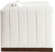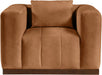 Minimalist masterpiece Mallina vegan leather accent chair combines form and function for a modern and stylish look. Its classic design and rich leather upholstery make it a sophisticated statement piece that will never go out of style. Its clean lines in rich leather upholstery with a brown walnut finished base create a sophisticated and inviting atmosphere.