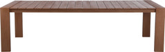 Make your outdoor oasis even more inviting with this Maui Natural Outdoor Patio Dining Table. Crafted with an aluminum frame to look like teak without the maintenance requirements, this dining table offers both style and convenience. Its natural finish and contemporary design add an effortless touch of elegance to any space. This dining table is built with precision and durability in mind, making it the perfect centerpiece for gatherings with family and friends. Embrace the essence of outdoor comfort and style with this elegant addition - your perfect companion for leisurely moments outdoors.