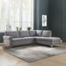 The striking Melvyn sectional sofa is sure to imbue your entertainment space with a touch of updated, contemporary style. A fusion of style and comfort, the sofa features a clean-lined silhouette with a durable wood frame and chrome-finished legs. This modern L shaped sectional features a left facing loveseat and right facing chaise. Wrapped in a rich chocolate fabric upholstery with a rolled arm with nailhead trim, ideal for any living room Decor. This sleek design sofa truly is the picture of modern aesthetics.