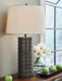 Artful curves define this striking table lamp. Its antiqued brown base feels both grounded and refined, offering a warm accent for casual decor. And the lamp's three-way switch is a bright idea for setting the ambiance in a reading nook, home office or entryway.