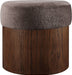 Strikingly modern, the Nimes velour fur fabric upholstered ottoman combines plush comfort with sleek design. The top is wrapped in luxurious velour fur fabric, offering a soft and inviting texture, while the cylindrical rich brown walnut wooden base provides a minimalist contrast. This versatile ottoman is perfect as extra seating, a footrest, or a stylish accent in any living space.