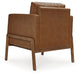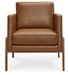 This accent chair is effortlessly elevated with its sleek, clean lines. Caramel faux leather gives your space a luxe vibe while keeping the price within reach. The chair's simple take on contemporary aesthetics gives you versatility while staging—set it with a sofa and loveseat to complete a lounge area, or use it as additional seating in a home office.