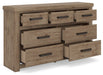 This dresser delivers a fresh, trend-right spin on rustic design. Its natural wood tones, minimal lines and dimensional detailing create a look that’s effortlessly chic yet grounded in authenticity. Complete with a thick, weighty top and silhouette, this piece has a substantial style that feels timeless.
